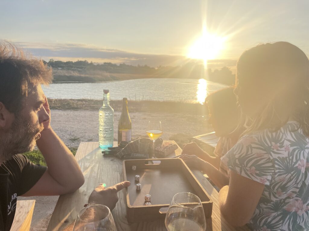 Tables toutes en terrasse, en extérieur, au milieu de cette nature caractéristique des marais salés. Elles sont toutes à l’ombre et un espace plus abrité nous permet de vous recevoir même lorsque la météo nous taquine.